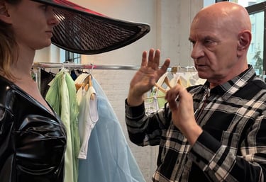 Wszystko zaczyna się od wizji – projektant wyobraża sobie efekt końcowy: jak materiał będzie reagował na światło, jaki ruch będzie miał na ciele modeli, jaki efekt kolorystyczny i fakturowy chce osiągnąć. To moment artystyczny – inspiracje mogą przychodzić ze świata sztuki, natury, technologii materiałowej, architektury, kobiecości.
