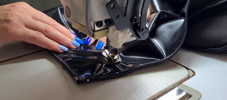 Materiały, które projektant opracowuje i projektuje, mają silny charakter: połysk lateksu, głęboka czerń kauczuku, struktury tkanin powlekanych – wszystko to nie jest przypadkowe. Poprzez materiał przekazuje on emocję, energię, a fasony stają się nośnikiem tej siły. Kombinacja materiału, koloru, faktury i kroju tworzy całość, w której kobiece piękno jest jednocześnie pięknem i siłą.